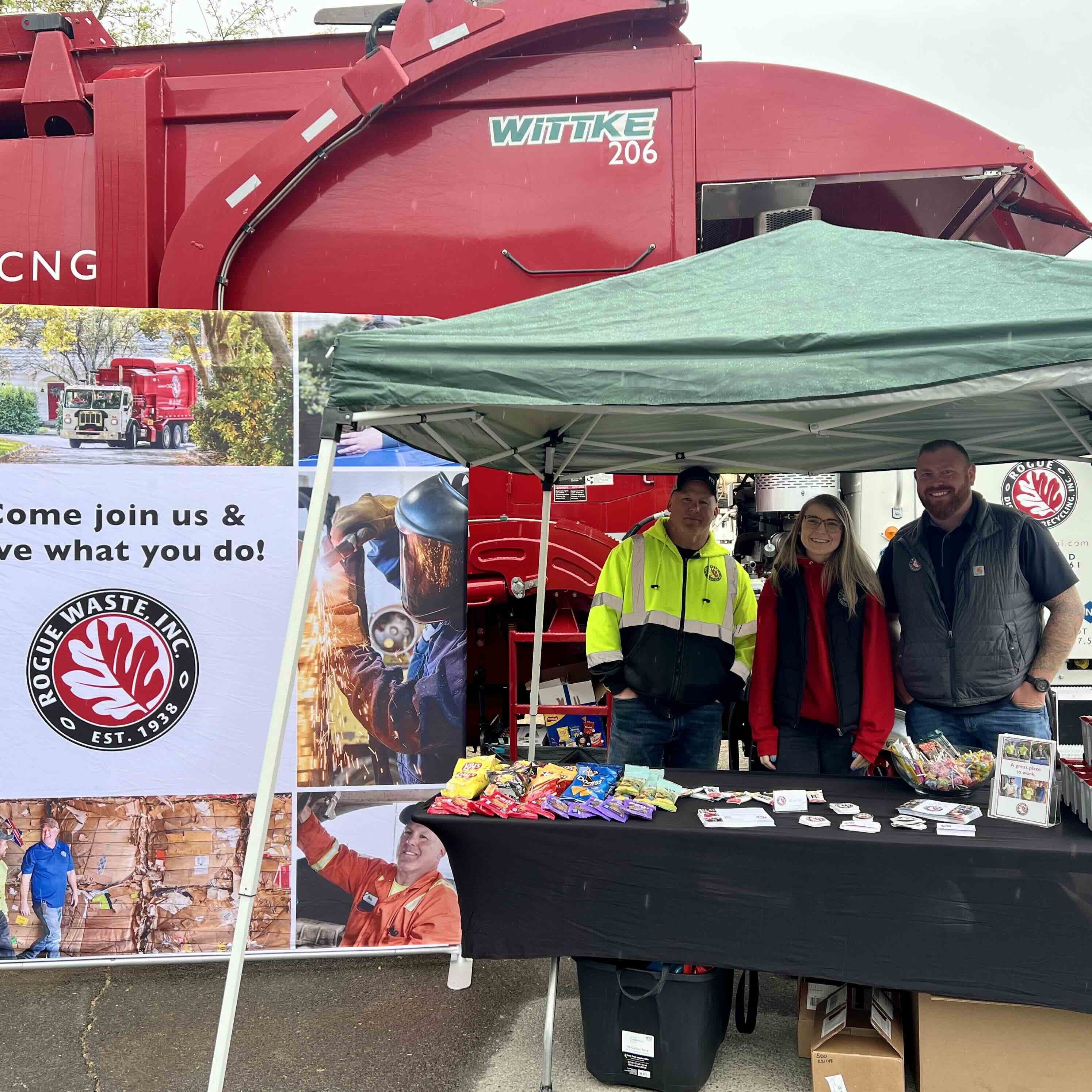 April was job fair month in southern Oregon, with the companies of Rogue Waste, Inc. on hand at two events to talk with prospective employees about the types of jobs available at the company.